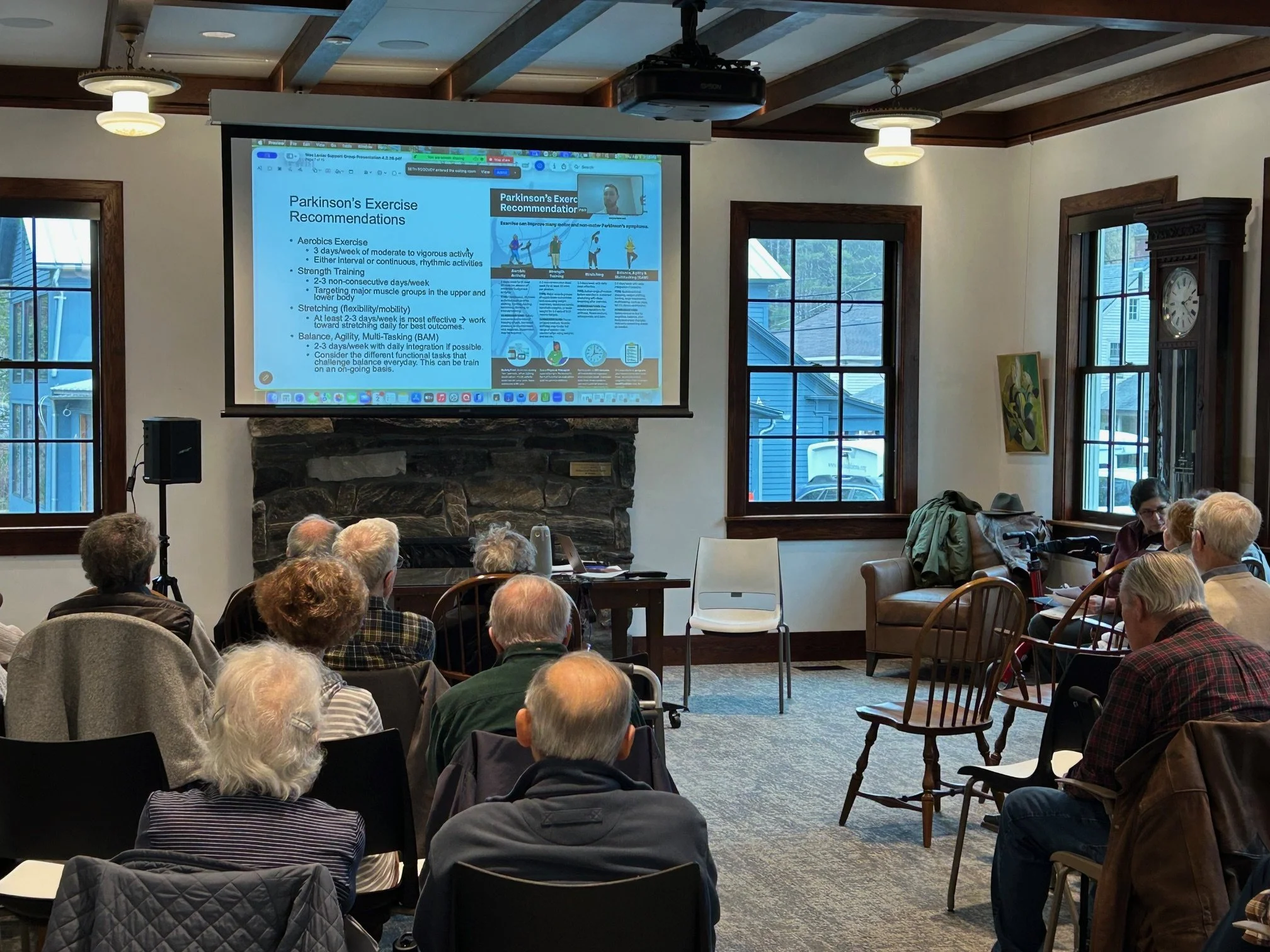 The Berkshire Parkinson’s Support Group is a voluntary association of people with Parkinson’s and their Care Partners who support one another in confronting the many challenges of Parkinson’s disease. Together we promote the sharing of knowledge for treating and slowing the progression of this disease’s symptoms, the strengthening of a sense of community for those who often feel alone, and the improved well-being that arises from greeting each day with a sense of acceptance, forgiveness and gratitude. Founded in 2020 in collaboration with the Monterey Massachusetts Council on Aging, the Berkshire Parkinson’s Support Group has become a vital source of connection, learning, and mutual support for people in the Berkshires living with Parkinson’s disease and those who care for them. What began as a small, local effort has steadily grown into a trusted community serving over 50 individuals with Parkinson’s and more than 40 caregivers from across the region. (April 2026)